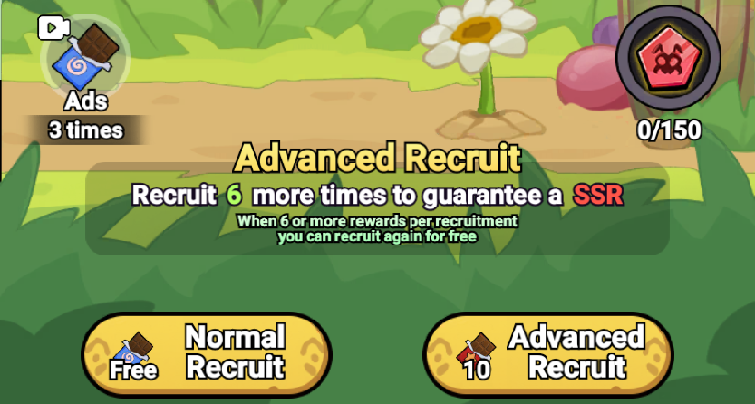 Points mechanism: (1 point for each round of regular recruitment, 12 points for super recruitment, reaching 150 points to receive a random mythical hero)