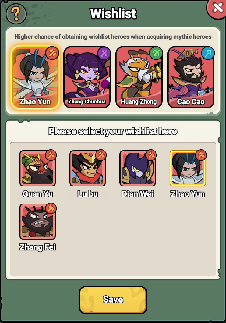 Wish mechanism: (Each profession can only choose one as a wish hero, and the recruited mythological hero is likely to be a wish hero. Remember to check it, lords~)