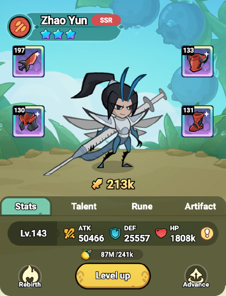 Heroic combat power cultivation: The main ways to enhance a hero's combat power include experience upgrading, hero advancement, unlocking talents, wearing wing patterns, equipping artifacts, etc. Among them, experience upgrading, hero advancement, and unlocking talents are the basic attribute enhancements, while wing patterns and artifacts need to be matched by the main characters. This is also why there are situations where some heroes are very powerful in other people's hands but pull their hips in your hands. Learning to match is more important!!!