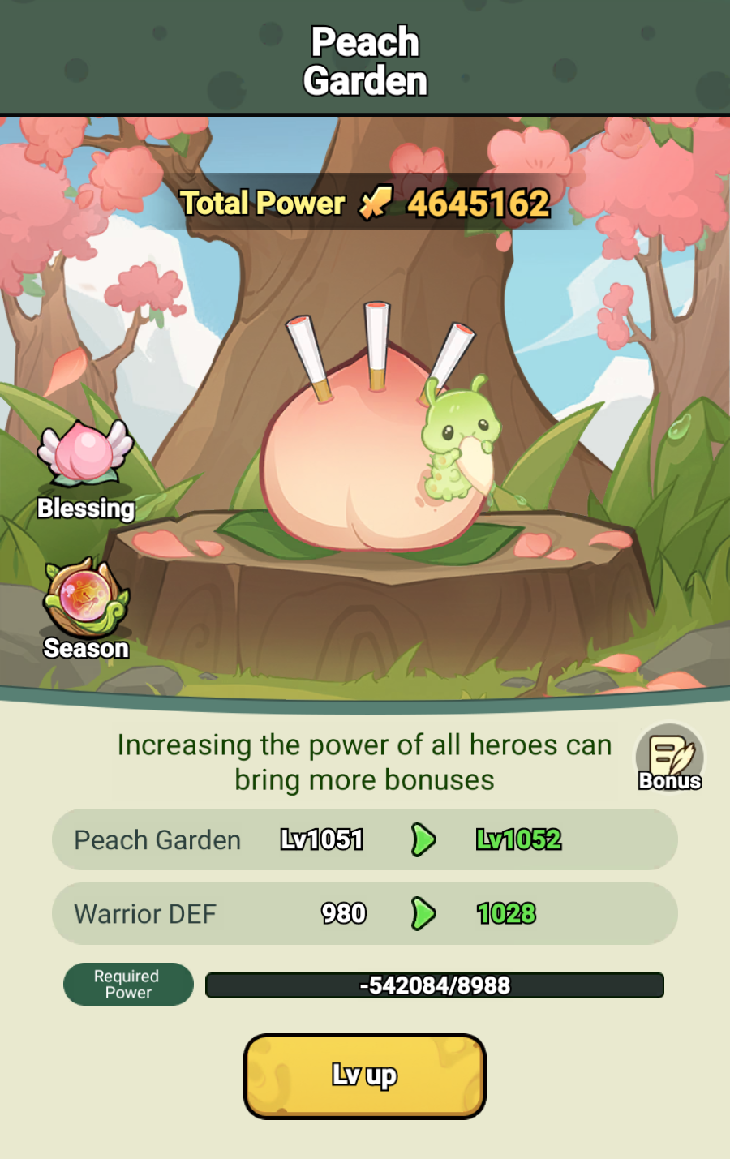Other combat power cultivation: Taoyuan combat power bonus, Four Seasons combat power bonus, Insect catching bonus, Competitive Glory bonus (where combat power bonus applies to all heroes and is a cultivation point that all lords should pay attention to)
