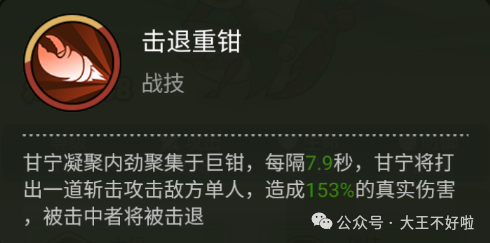 培养注意事项:新手7日会送一只,如果还抽到了两只野生的,就可以强势一段时间,因为会解锁他的天赋【击退重钳】附带真伤和击退效果。
